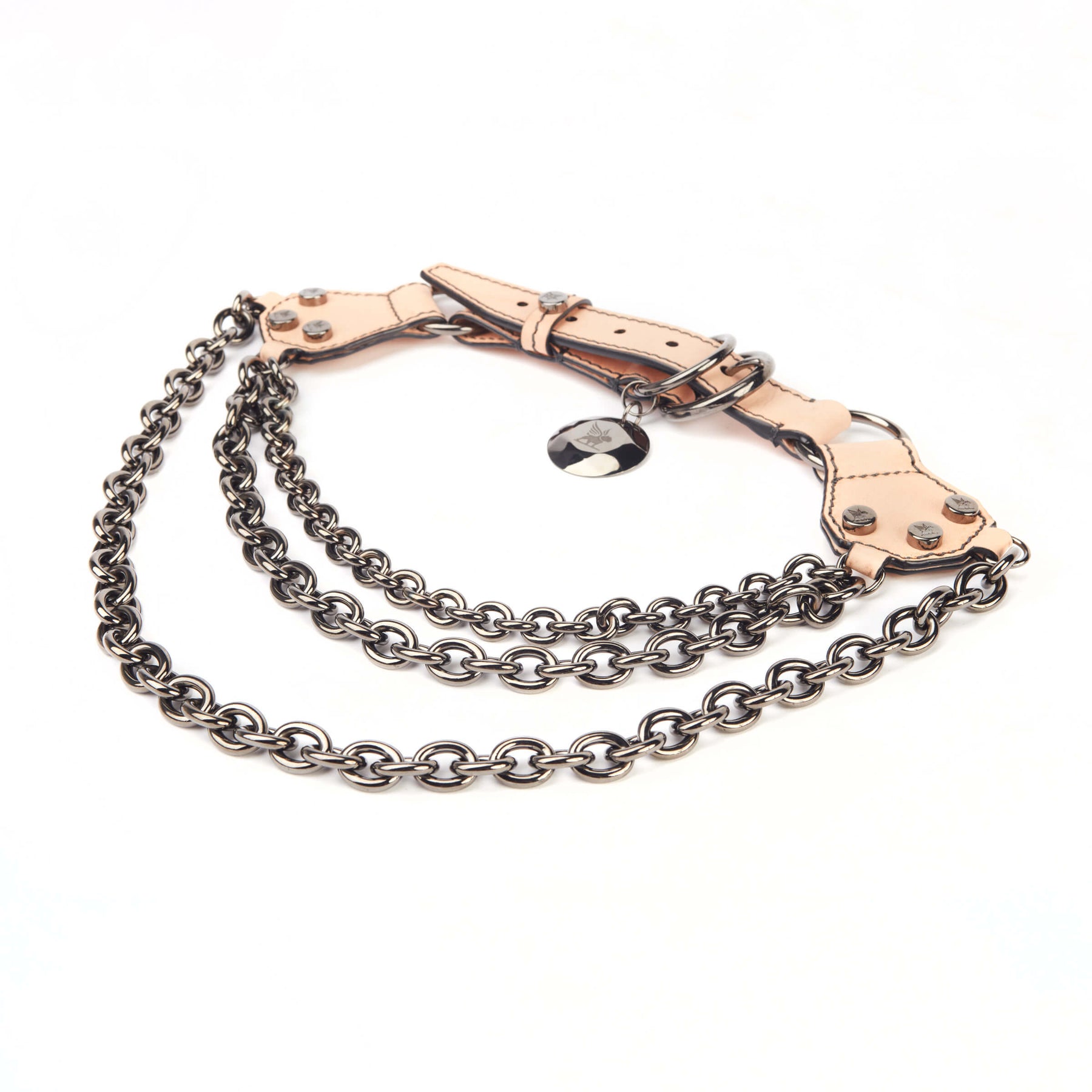 Make a Luxe statement with this triple-chain link harness made of Italian bridal leather. Featuring signature Devils & Diamonds hardware, it’s designed for those who appreciate both fashion and functionality.